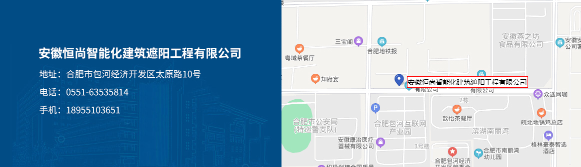 安徽恒尚智能化建筑遮陽工程有限公司是生產高品質窗簾產品的專業公司。本公司擁有廠房面積5000余平方米,是安徽省先進的電動窗簾生產廠家,公司擁有大型先進的窗簾制作設備和專業的生產和安裝技術人員,并有著嚴密的管理和質量體系,有效地保持了產品質量。本公司具有豐富的建筑遮陽系統的應用技術和建筑遮陽工程的施工經驗,可持續為全國用戶提供先進、專業的遮陽節能產品,可為建筑設計院和裝飾設計工程公司提供專業的建筑遮...